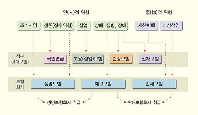 저는 자동차보험, 운전자보험, 실비보험을 제외하고 사실상 가지고 있는 보험이 없습니다. 보험이라고 하면 거부감에서 걸려 무의식적으로 멀어져 온 것이 사실입니다. 솔직히 말하면 실비보험조차도 해지해야 하지 않을까 고민하고 있습니다. 그런데 공보험까지 포함해서 더 생각해보니 우리는 의지와 상관없이 보험이 필수적인 시대에 살고 있다는 것을 느낄 수 있었습니다. 공부는 해야 하는구나라는 생각이 들더라고요. 공보험은 4대 보험과 같은 공적 성격을 띠고 있는 보험을 말하는데, 우리가 알고 있는 국민연금보험, 국민건강보험, 고용보험, 산재보험 등을 말합니다. 이전에 공부했던 기본적인 내용만 간단하게 공유해보려고 합니다. 보험회사의 종류와 보험의 종류에 대해서입니다.
