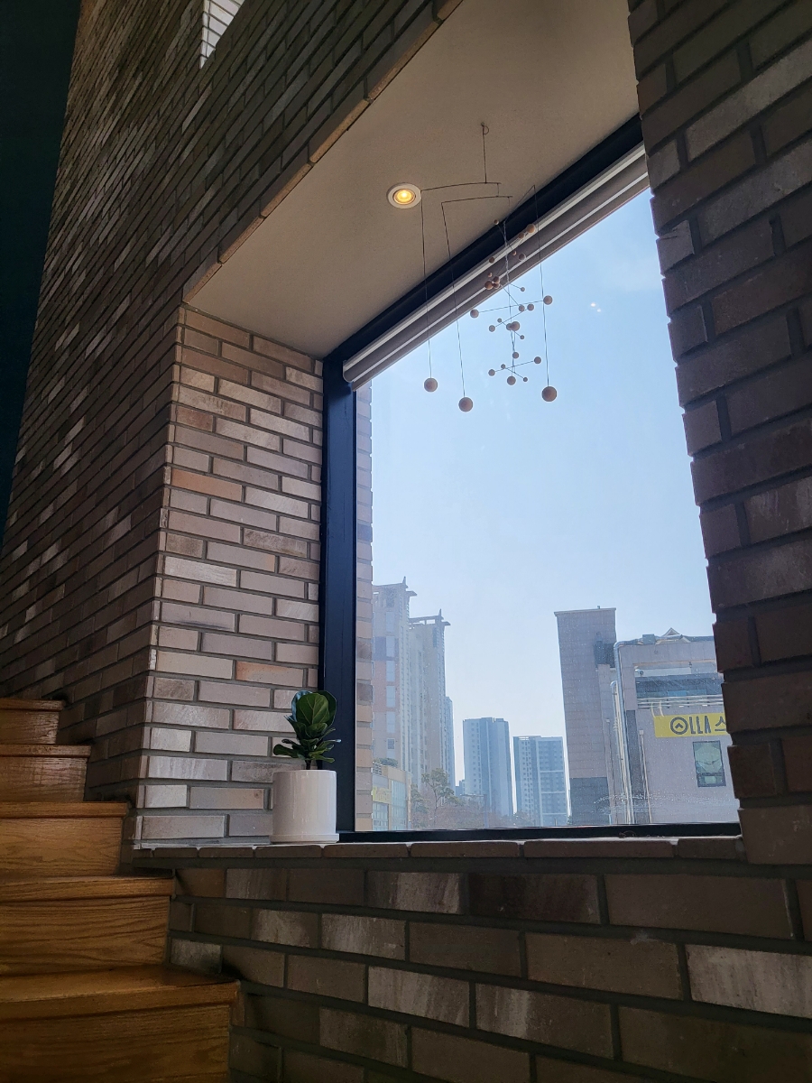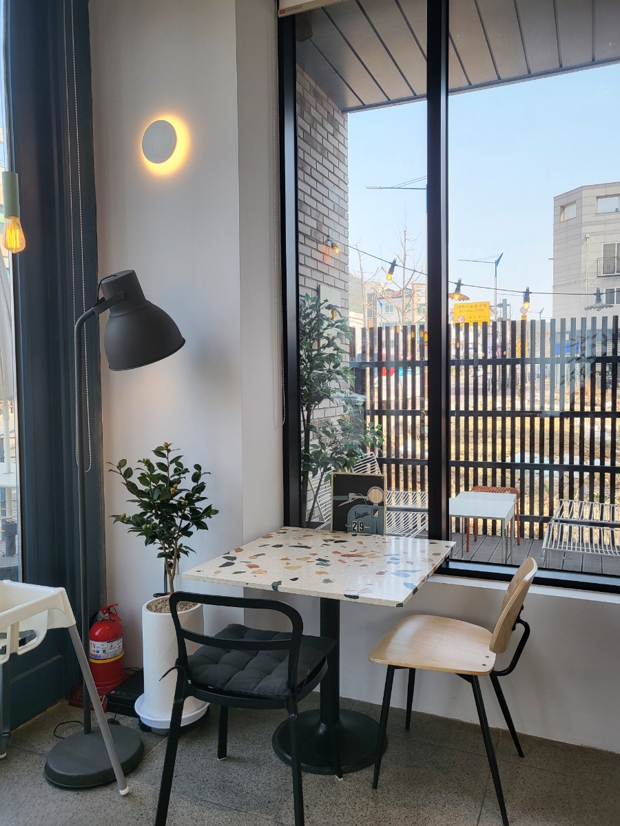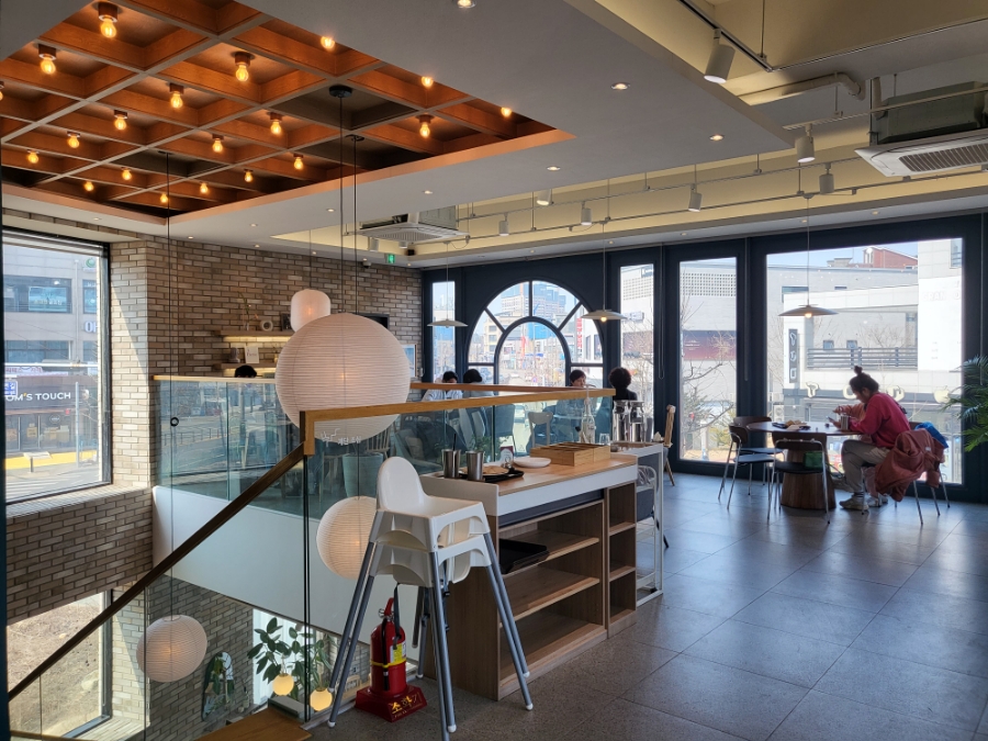 2층도 통유리창으로 되어있고 방 한쪽은 개별 테이블로 나뉘어져 있다.