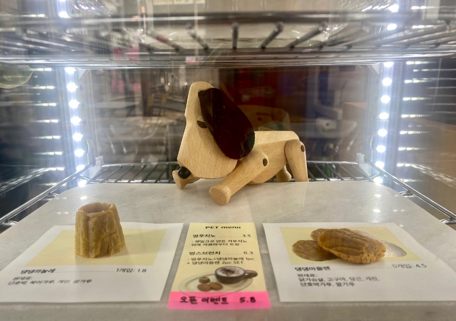 진열장 안에는 강아지들을 위한 간식들이 있는데 너무 귀여웠어요.