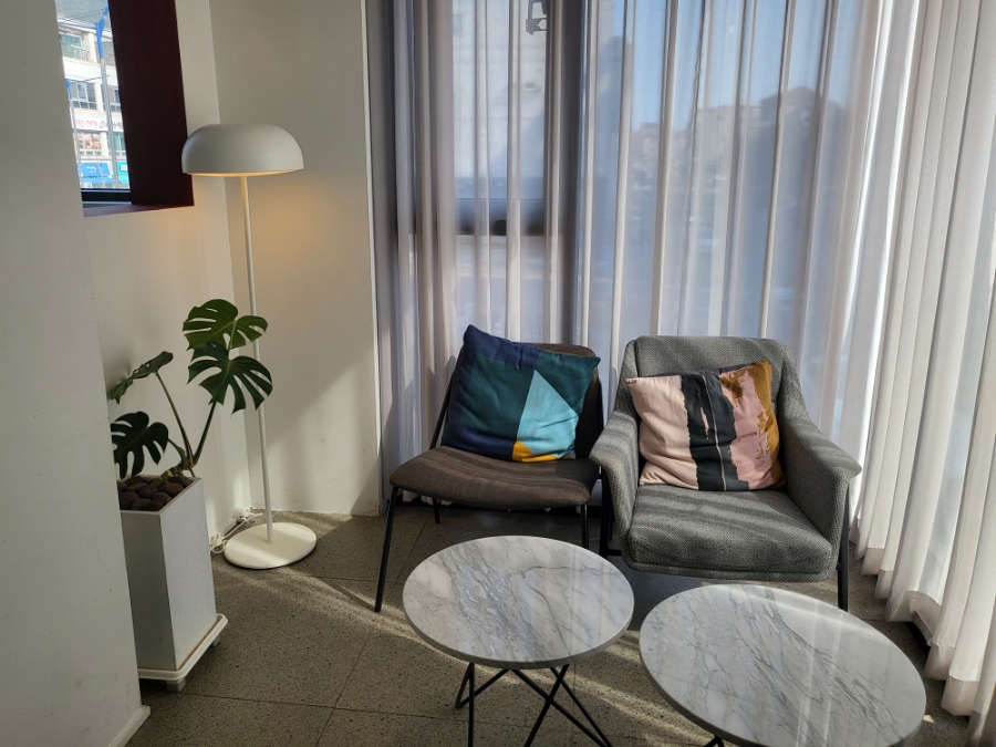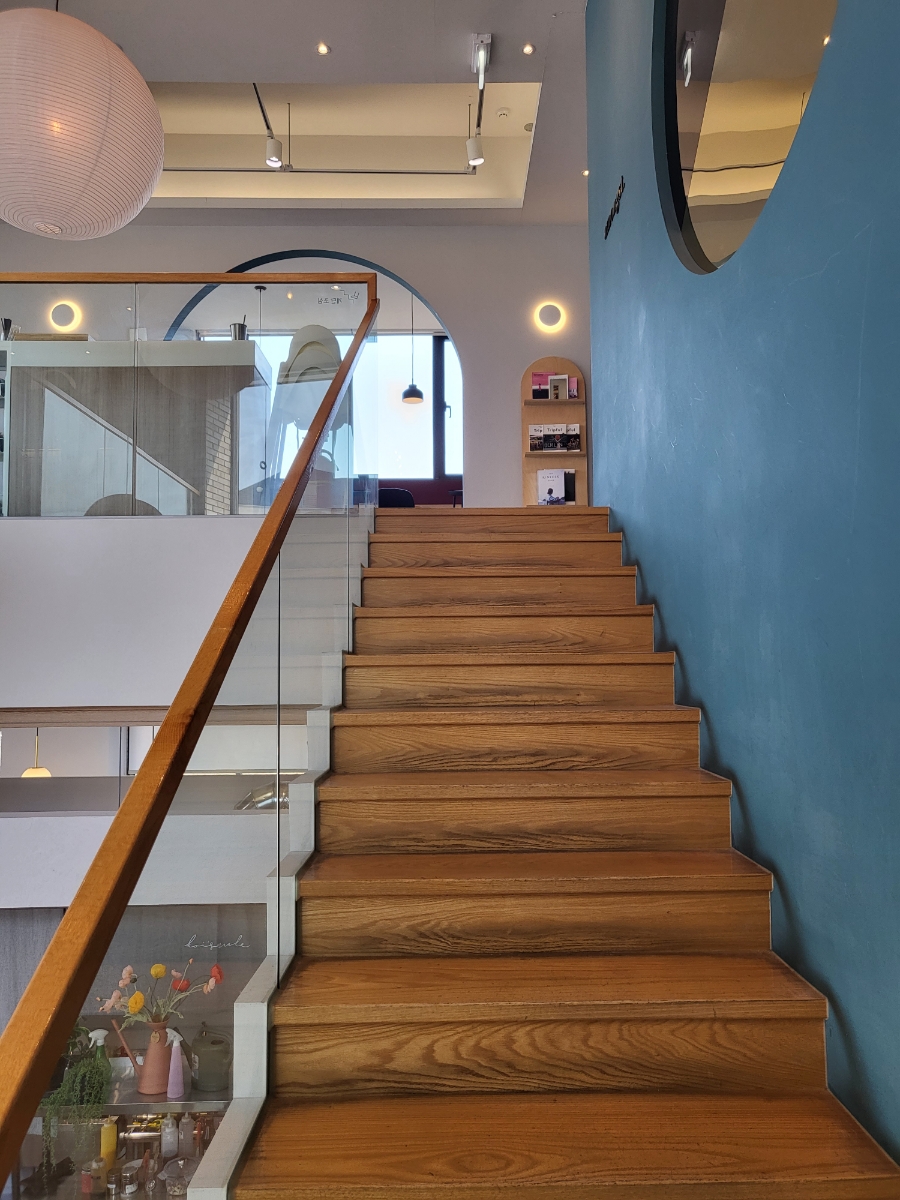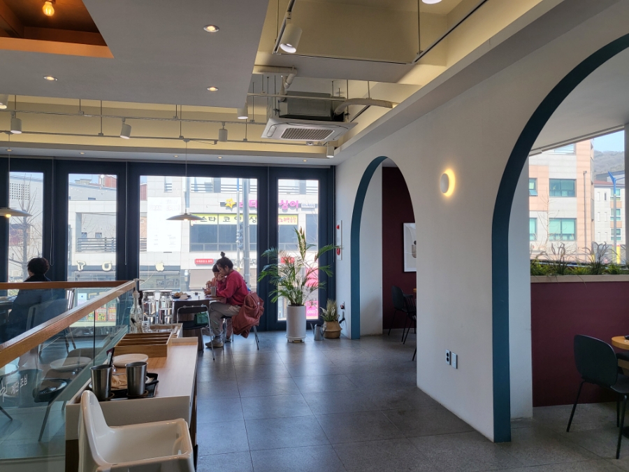 2층도 통유리창으로 되어있고 방 한쪽은 개별 테이블로 나뉘어져 있다.