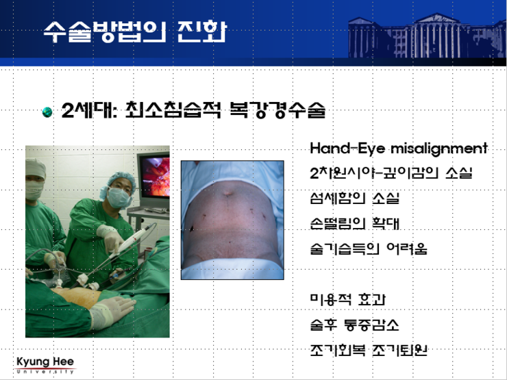 (전립선암 수술의 개복수술, 복강경수술, 로봇수술의 장점과 단점은?) 이 글은 서울대학교병원 건강칼럼 네이버에 실렸습니다. 관련 질환에 대한 내용을 정리하면 다음과 같습니다. 전립선암과: 비뇨기과(개복수술) 개복수술은 수십년 동안 시행되어 왔기 때문에 수술기법이 잘 정립되어 있고 장기간 수술에 대한 결과도 잘 알려져 있습니다. 큰 이점. 복강경 수술이나 로봇 수술이 심한 심혈관 및/또는 폐 기능 장애로 인해 어려운 경우에도 개복 수술을 시행하는 경우가 있습니다. 또한 한국에서는 개복수술이 보험에 가입되어 있기 때문에 환자의 비용부담이 상대적으로 적으며 아래 화면을 보면서 수술을 하는 방법입니다. 개복수술에 비해 수술 후 출혈과 통증이 상대적으로 적기 때문에 빠른 회복을 기대할 수 있습니다. 그러나 복강경 수술의 경우 수술의 기술적인 난이도가 높아 숙련된 외과의사 외에는 수술 결과가 좋지 않다. 그러나 특히 최근에는 로봇수술의 도입으로 시행 빈도가 크게 줄었다. 복강경 수술과 달리 로봇팔을 이용해 손을 자유롭게 움직일 수 있다는 장점이 있다. 로봇수술은 향후 전립선암 수술의 표준이 될 것으로 기대된다. 그러나 로봇수술은 아직 보험이 적용되지 않아 개복수술보다 비용이 많이 든다. 또한 새롭게 도입된 수술법이기 때문에 장기간 치료효과의 축적이 아직 미흡한 실정이다. 의료법, 보험 적용 범위 및 치료 기술은 언제든지 수정, 개선 또는 변경될 수 있습니다. 따라서 이 글이 언제 쓰여졌는지 확인할 수 없으며, 그 이후로 변경되었는지 여부는 확인할 수 없습니다. 따라서 보다 자세한 정보가 필요하시면 병원에 직접 문의하시는 것이 도움이 됩니다.